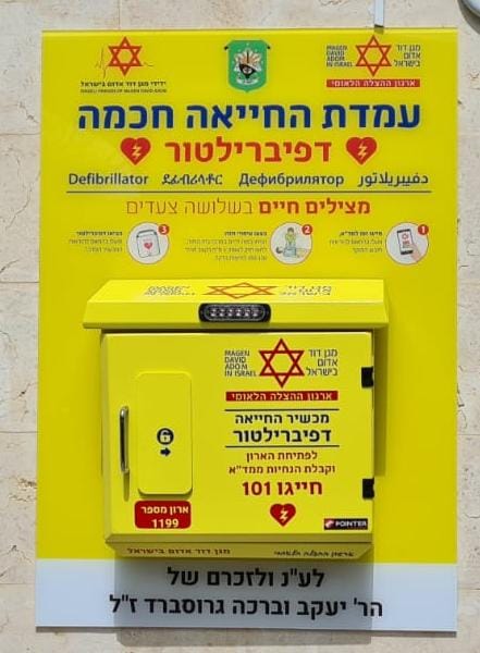 יעקב וברכה ז"ל, הוריו של חובש מד"א חזקי גרוסברד, נפטרו שניהם מסרטן. לזכרם, החליט בנם לתרום עמדת החייאה חכמה של מד"א שהוצבה בגן אליעזר אלקס ברמת גן ♦ העמדה מצטרפת ל-23 עמדות קיימות בעיר ובקרוב צפויות להיות מותקנות שמונה עמדות נוספות